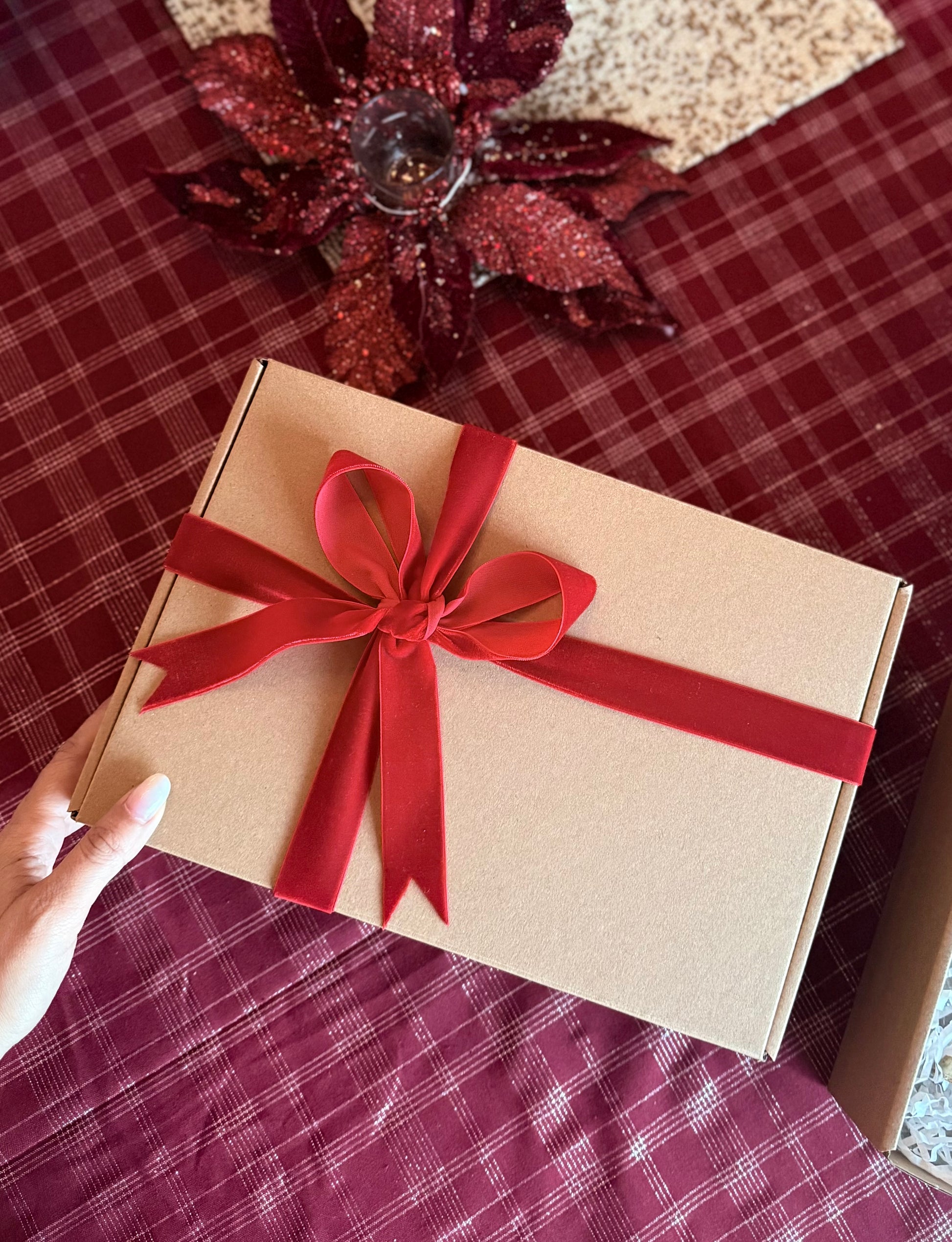 Beautifully packaged with Christmas ornaments and finished with a red velvet ribbon, this package makes the most stunning gift this season.